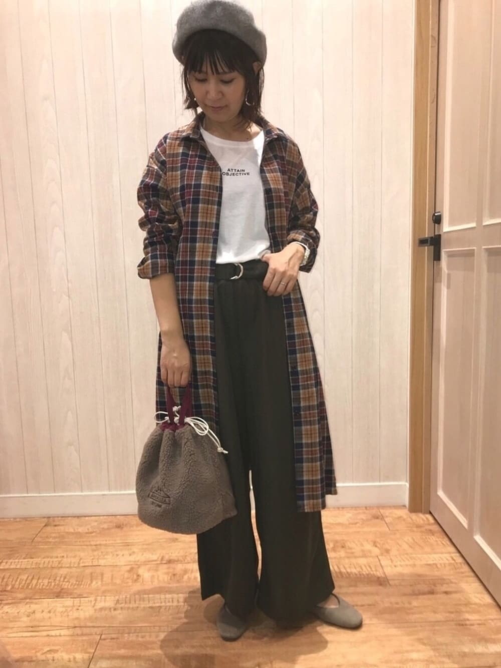 こんにちは* 今日はキューティーコーデ🍂 こちらのチェックシャツワンピは ロゴTとのセットで¥3598です! しっかりとした生地で、 このチェックの配色がツボでした💓 あと裾にスリットが入ってるのが今っぽい! 秋冬はベレー帽さえかぶっとけば コーデが決まると思ってるタイプです🙋🏻♀️
