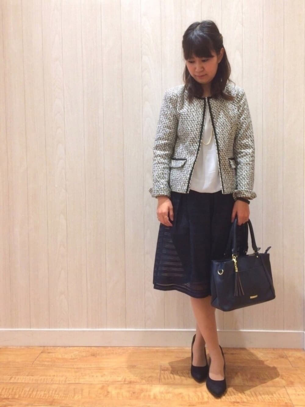 こんにちは🐰 先日のお休みに いちご狩りに行ってきました🍓 私は栃木生まれ栃木育ちです☺ 父方のおばあちゃんちもいちご農家✨ ですが私は いちごが好きじゃありません(笑) 果物の甘い部分は大好きなのですが 酸っぱい部分が許せないんです😂 好き→メロン、スイカ、桃、さくらんぼ、ぶどう、梨、カキ 苦手→いちご、みかん、オレンジ、りんご、キウイ、パイナップル これに共感してくれた人に 出会ったことがありません🙁 WEAR内でいらっしゃったらぜひご一報を🙋 息子はいちご大、大、大好きなので 確実に私より食べてました🍓 話しが長くなりましたが 今日のコーデです😇! 今回もセレモニーのご案内です✨ ツイードノーカラージャケットと シアーボーダースカートで 少しだけ可愛らしい感じに♡ ですが小物をシックなトーンで合わせたので 卒園・卒業式にオススメなスタイルです♪ 次は入園・入学式スタイルを ご紹介します🌸