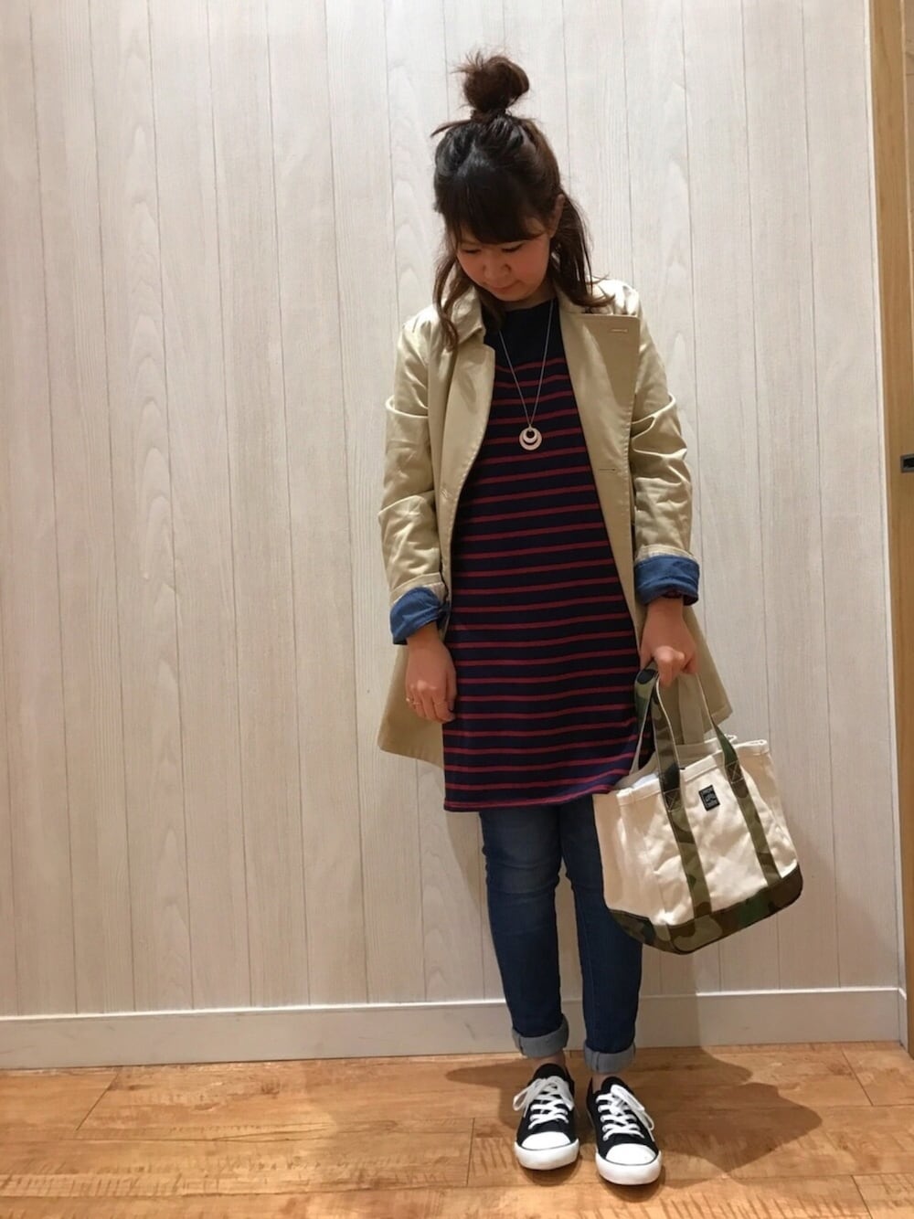 チエのワンピース「◆レイヤード風ボーダーチュニックワンピース」を使ったコーディネート