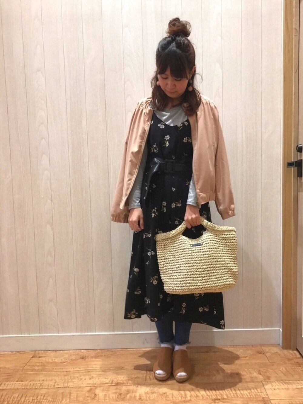こんにちは* こんな花柄ワンピ待ってましたー! という商品が入荷したので早速購入しました😇♡ グレーのインナーとセットです♩ 落ち着いた花柄で 甘すぎない感じが気に入りました💐♡ 長さがたっぷりあって裏地も付いているので 素足でスニーカーとかでも可愛いですね👟 ピンクのミリタリーブルゾンは ポケットにお花のビジューが付いています☺️ やわらかくてさらっと羽織れて すごく着心地が良いです♩ 合わせてるサボサンダルは プラットフォームになっているので 高さがあっても安定して歩きやすい! さっとすぐ履けるのも◎です🙆