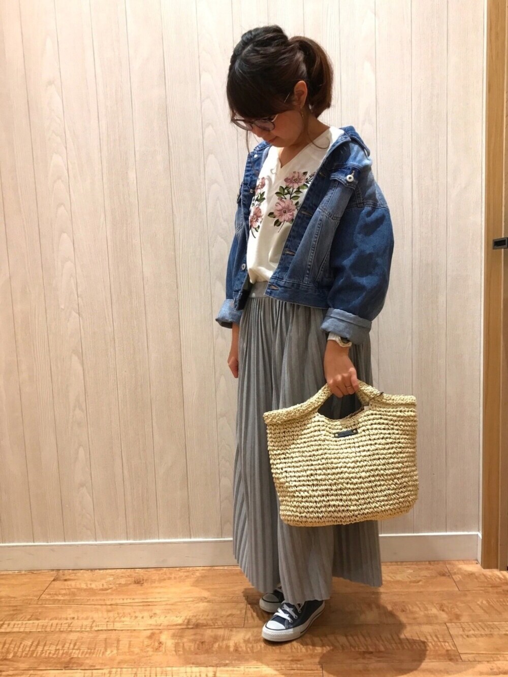 こんにちは* 刺繍トップス×プリーツスカンツ🐻♡ 大きめ刺繍がインパクトあって可愛いです💕 生地は薄めのトレーナーっぽい感じなので ラフに着て頂けます♩ Gジャンちょっと襟抜き気味に着てみたら 思いの外後ろにいってしまった💦 お洒落ぶってる感じですみません😭