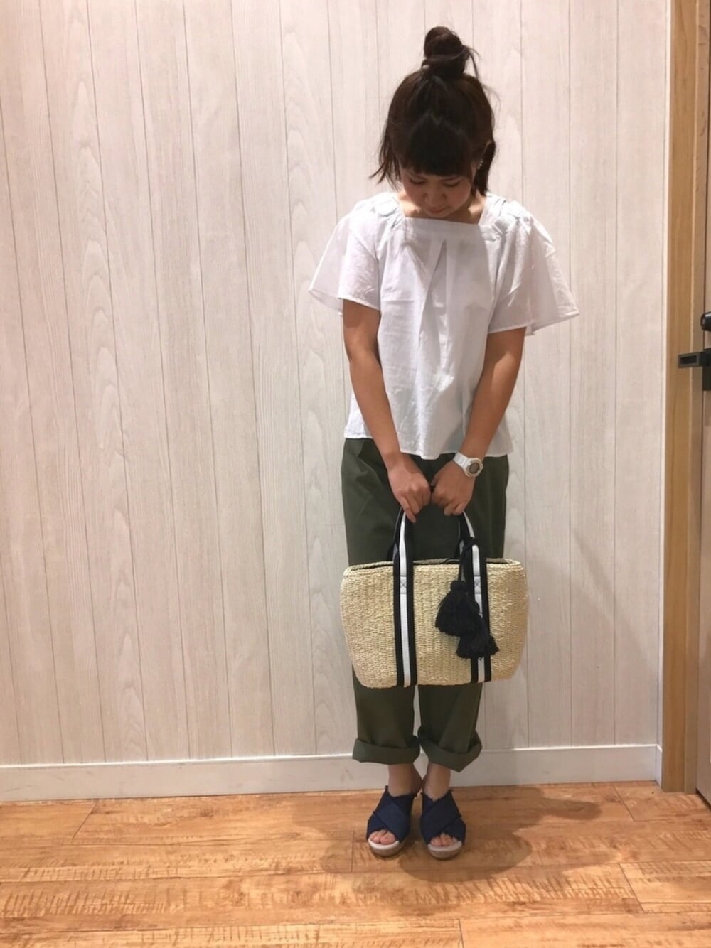 こんにちは* ドレスキップのチノワイドパンツの着回しです🐰♩ ブラウスでカジュアルガーリーに♡ こちらのブラウス、ストライプも めっちゃ可愛いです!💓 丈も短めでワイドパンツとの相性も◎です🙆 新作入荷の日は これ可愛い、あれ可愛い、これと合わせたいだの スタッフと盛り上がるのが楽しいです〜♩ (どこの店舗もそうですよね?)
