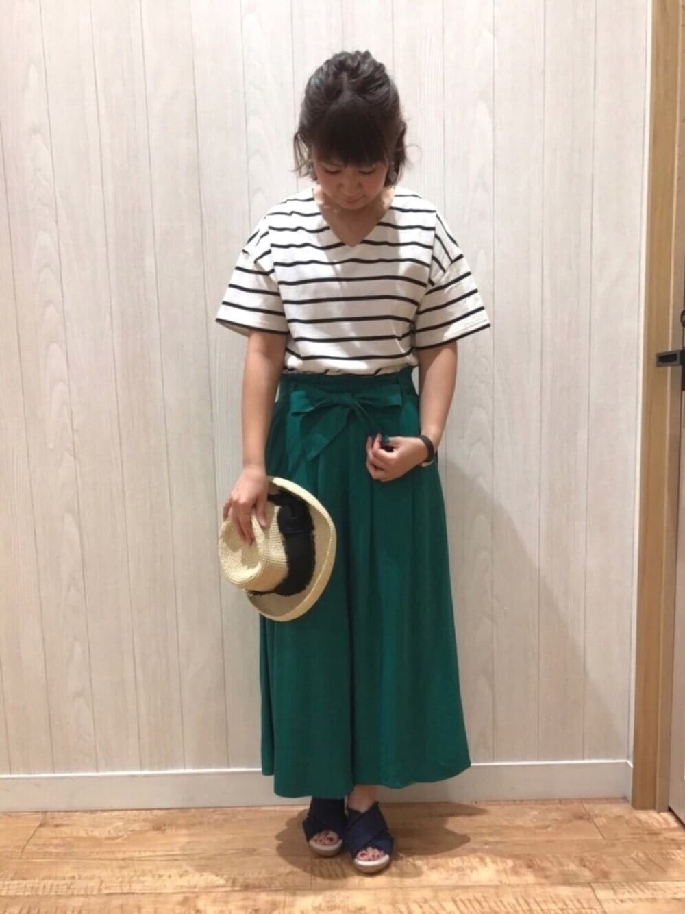 チエのTシャツ/カットソー「◆ボーダーVネックプルオーバー」を使ったコーディネート