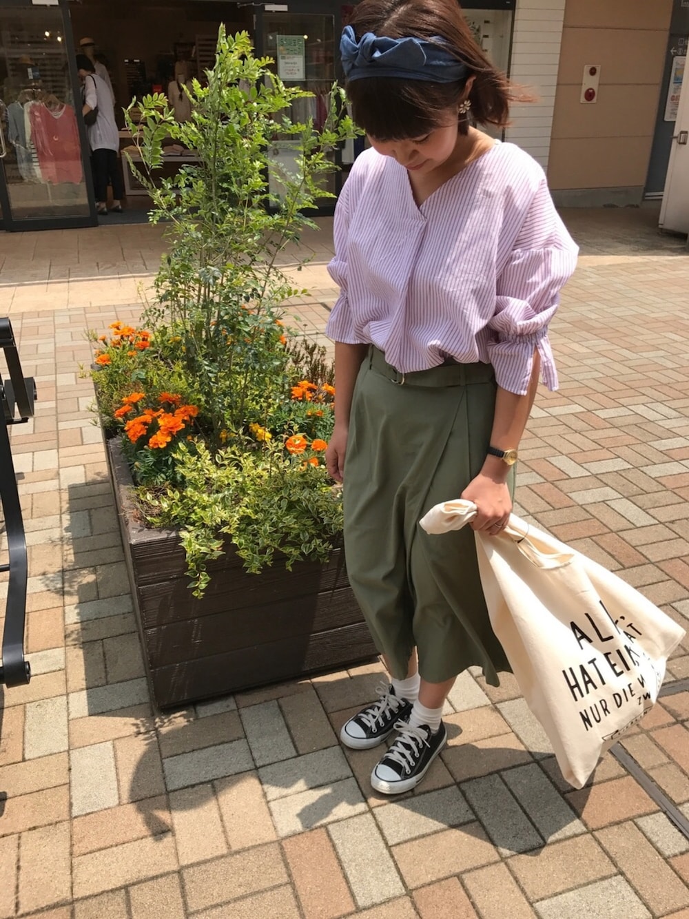 こんにちは* このブラウス何回着んねん!って感じですが… えっと3回目の着回しです。 けど無地とストライプだと 印象が全然変わりますね! 赤のストライプが新鮮で とても可愛かったです☺️♡ 強風で全体的にだいぶ あおられています〜😮🌪