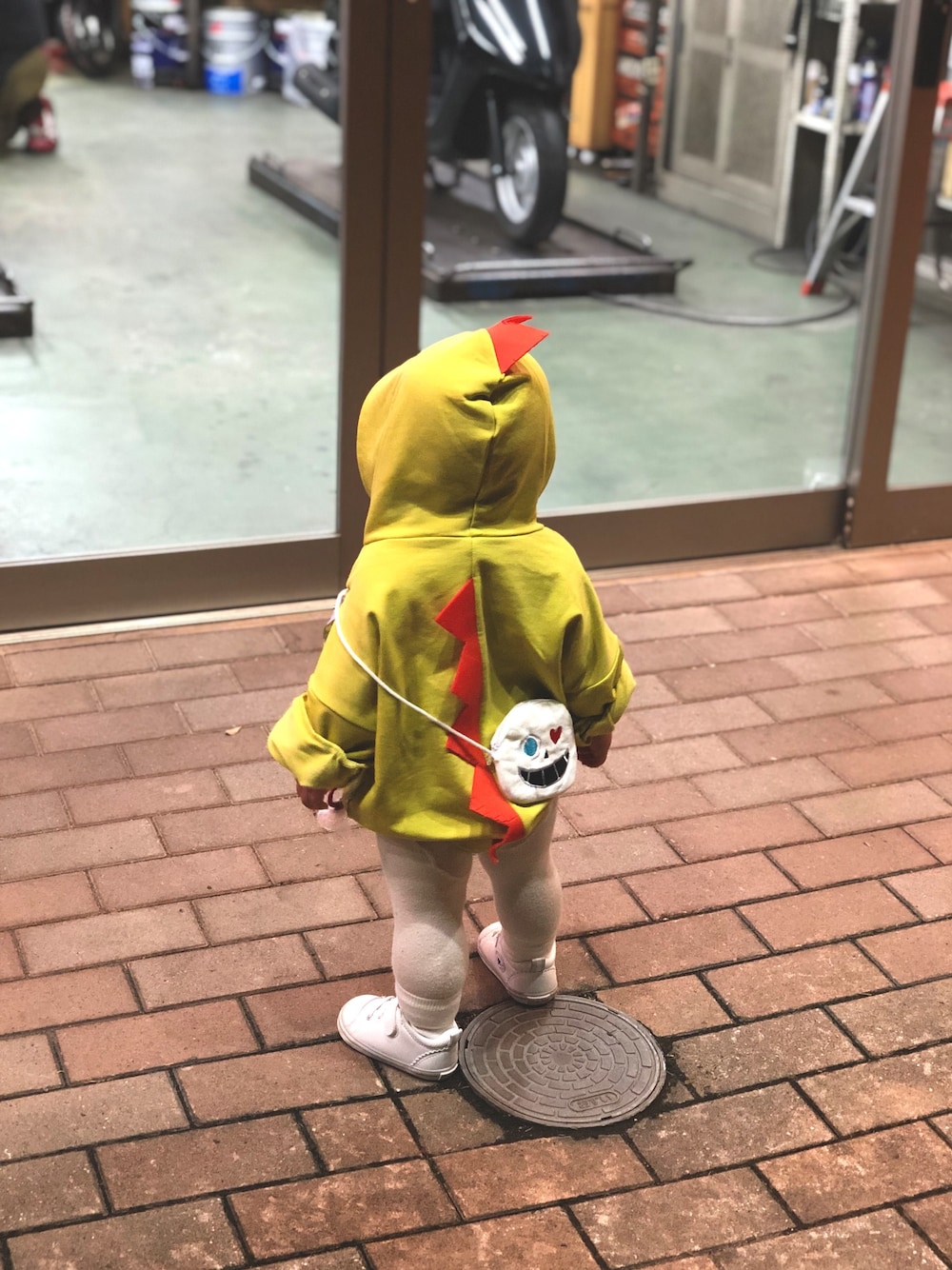 1歳2ヶ月の娘コーデ。 恐竜ロンパースで夜のおさんぽ。 どこで買ったかは、、忘れました😅 ・ ・ スニーカーは、ZOZOTOWNで購入しました。