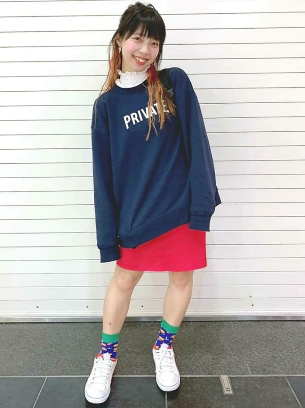 *゚.。・'*;'。・゚*,。・;'*゚ #ootd ゆるっとスウェットから レースの襟をちらり♡ 靴下はハンバーガー柄🍔 ✰ \ new / Instagram @xxchiebacca