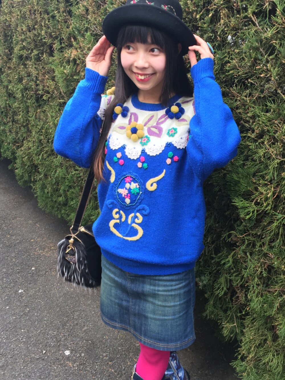 *゚.。・'*;'。・゚*,。・;'*゚ #ootd メルヘンな古着ニットと ピンクのカラータイツ♫ 足元はアリスが支えてくれる♡ \ new / Instagram @xxchiebacca