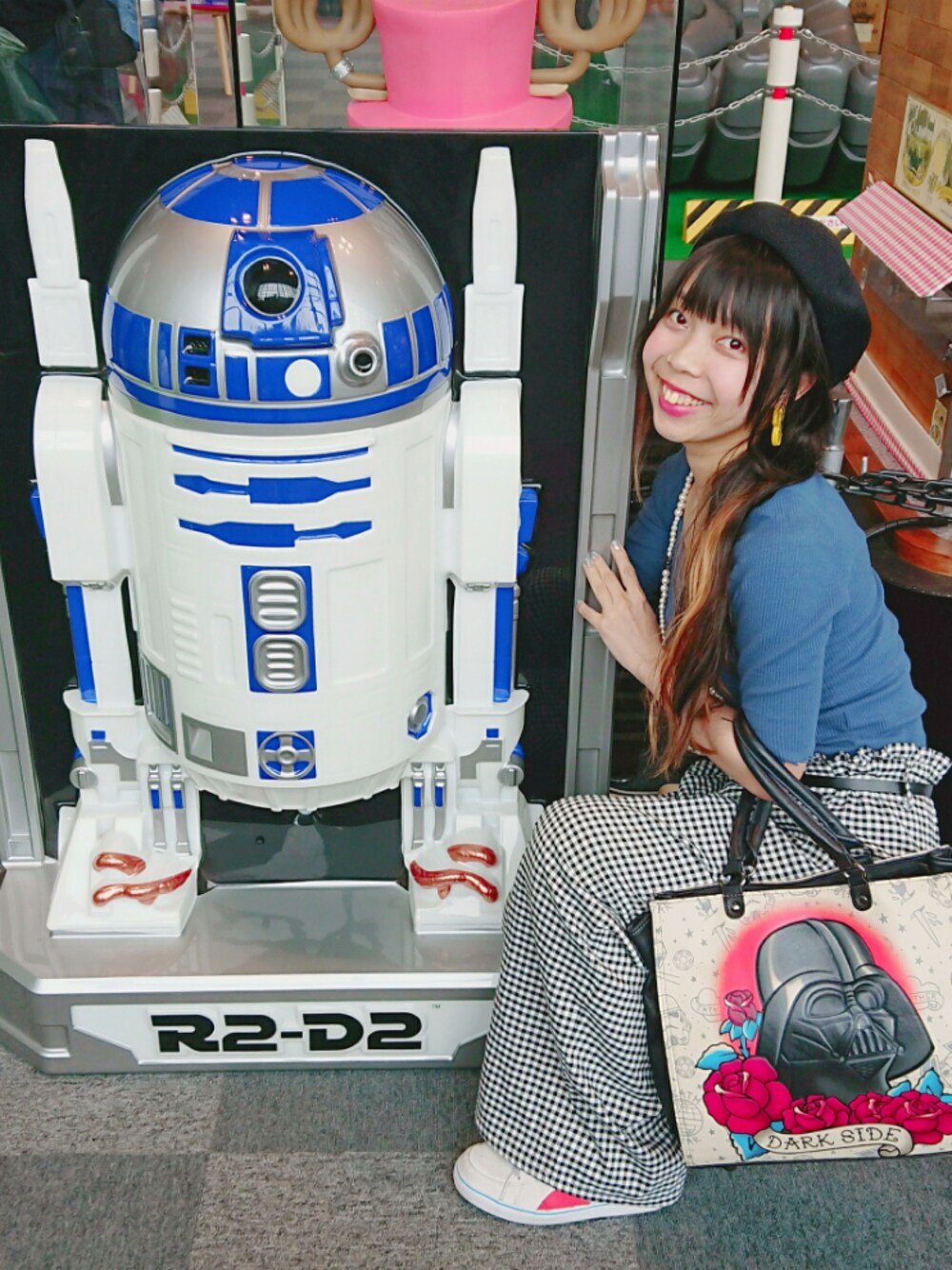 *゚.。・'*;'。・゚*,。・;'*゚ #ootd 偶然にもR2-D2に遭遇した わたしの服はブルーだったし カバンはベイダー卿…🌹 ⭐ Instagram @xxchiebacca