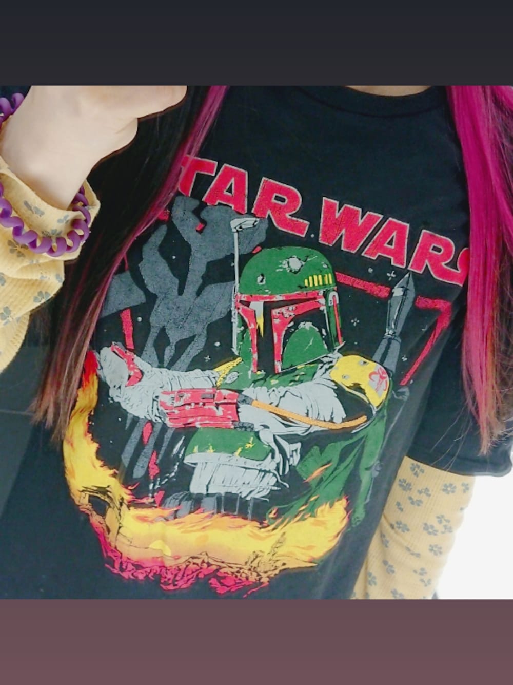 *゚.。・'*;'。・゚*,。・;'*゚ #ootd ボバ・フェット🚀 小花柄のサーマルと 合わせちゃう(古着) OFFの日だったら つけ襟プラスしたい~~ ⭐ Instagram @xxchiebacca