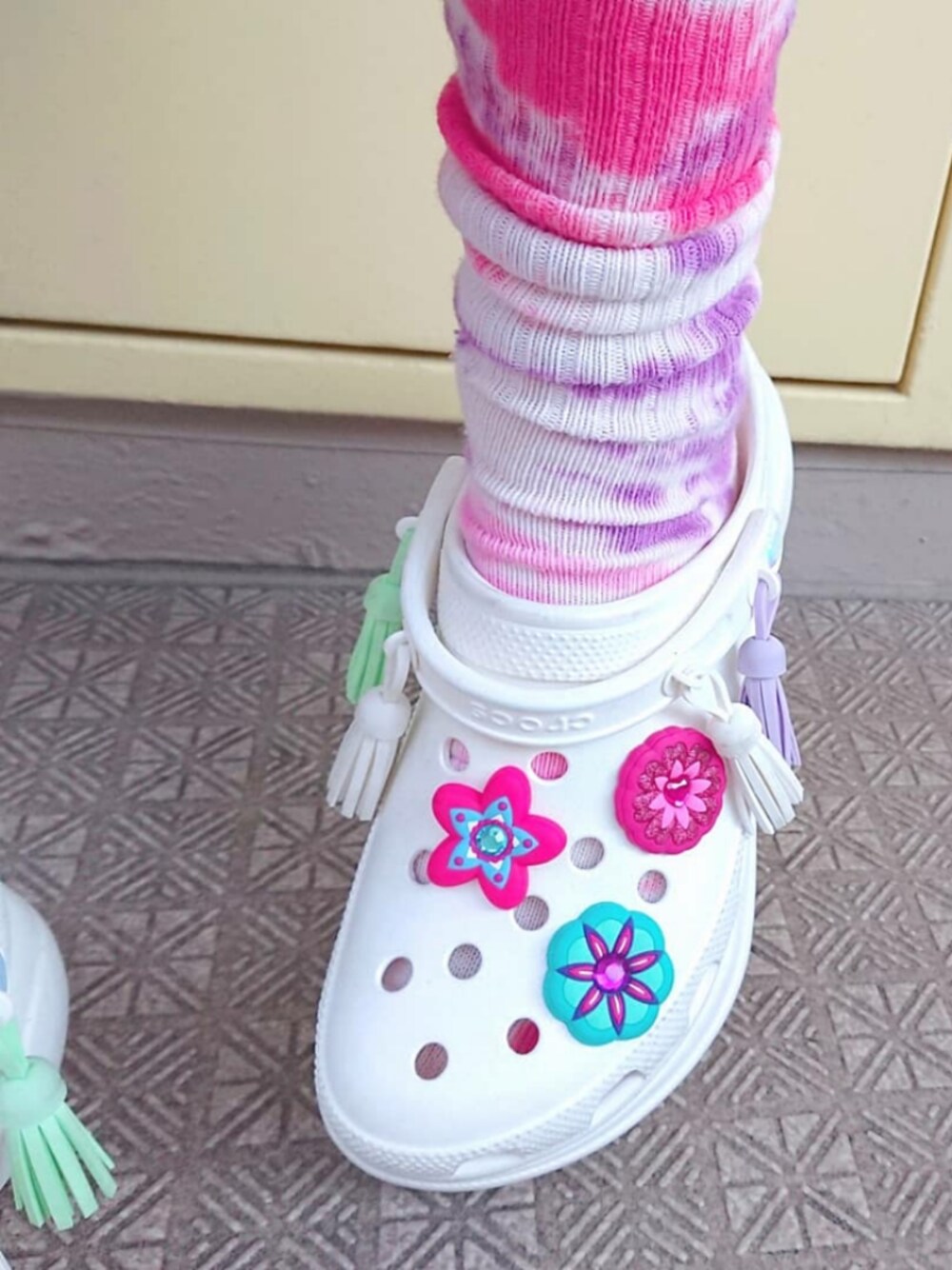 chie☻のサンダル「クロックス クラシック ベイ イリディセント クロッグ ウィメンcrocs classic bae iridescent clog w」を使ったコーディネート
