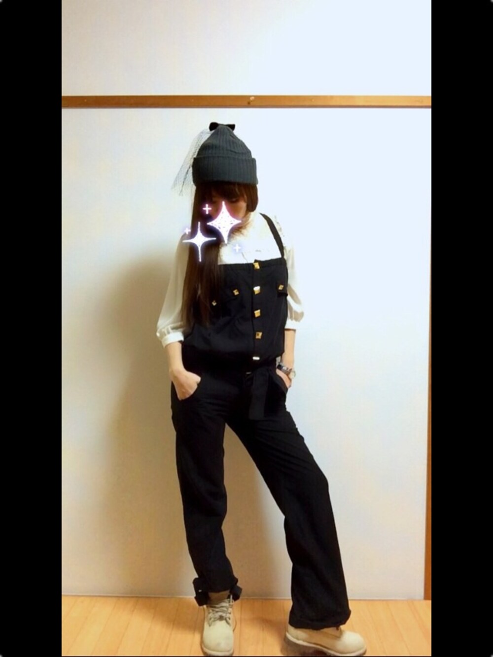 お休み着カジュアルの巻。日曜ver. お出かけ着の巻。 サロペット? オールインワン? 久々に着ました… ズボンのトラウマから、ずっと着てなくて(笑) これに、レースのブラウス入れました。 透け感が春めいています。 コレにさらにライダース♡ ブラウスとの甘辛に。 更に、Timberlandを履きました。 相方が買ってくれ、珍しい色がお気に入り♡ 更に… 私が昨年の冬からかぶり続けている、 チュールレース付ニットキャップ! 新顔のグレーをチョイス。 白、黒、グレー。 いよいよ三色揃いました(笑) また、この手の帽子かよ!! とは、言わないように(笑) バッグはミンコフのポシェット♡ 小荷物で気楽に。 あれこれは、小窓にて←雑。 デートはこのぐらい、気楽に。 そして、動きやすく。 では、お出かけ中の… ブレイクタイムに更新のため、このへんで♡ 残り少ない時間、お休み楽しみます♡ みなさん、いつもセーブにコメント… めっちゃくちゃ楽しいです!! ありがとうございます♡ では、ごきげんよう♡