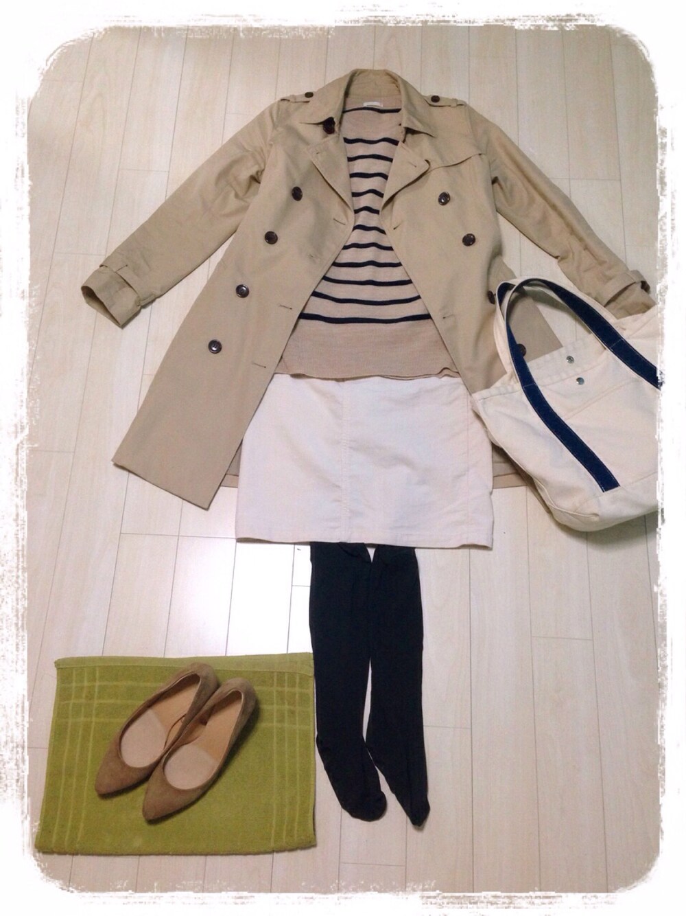 今シーズン、初トレンチ。 ベージュでまとめてみました。