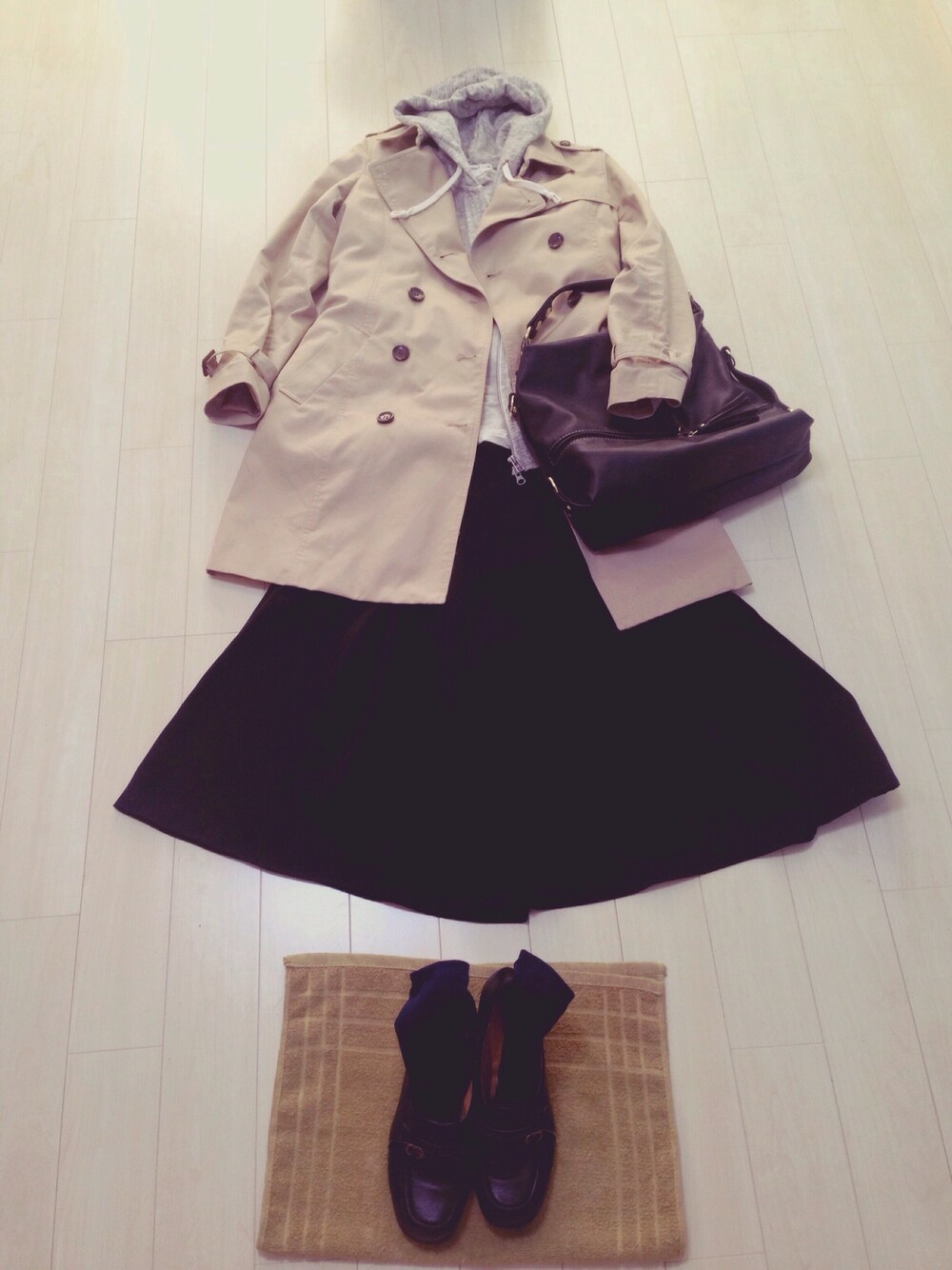 ようやく金曜日。 夕方出かける予定があるので少し暖かい格好に。 トレンチコートとパーカーのレイヤード。トレンチコートにガウチョパンツ、合わないと思ったけど意外と平気だった♪