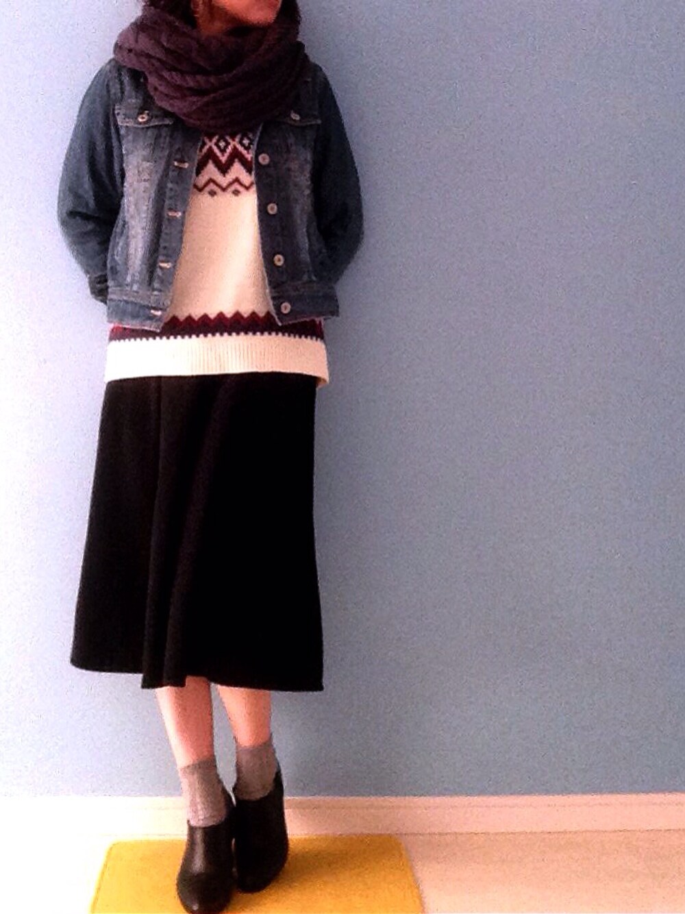 ご覧いただきありがとうございます💕 今日は暖かかったのでデニムジャケット+スヌードにしました😊
