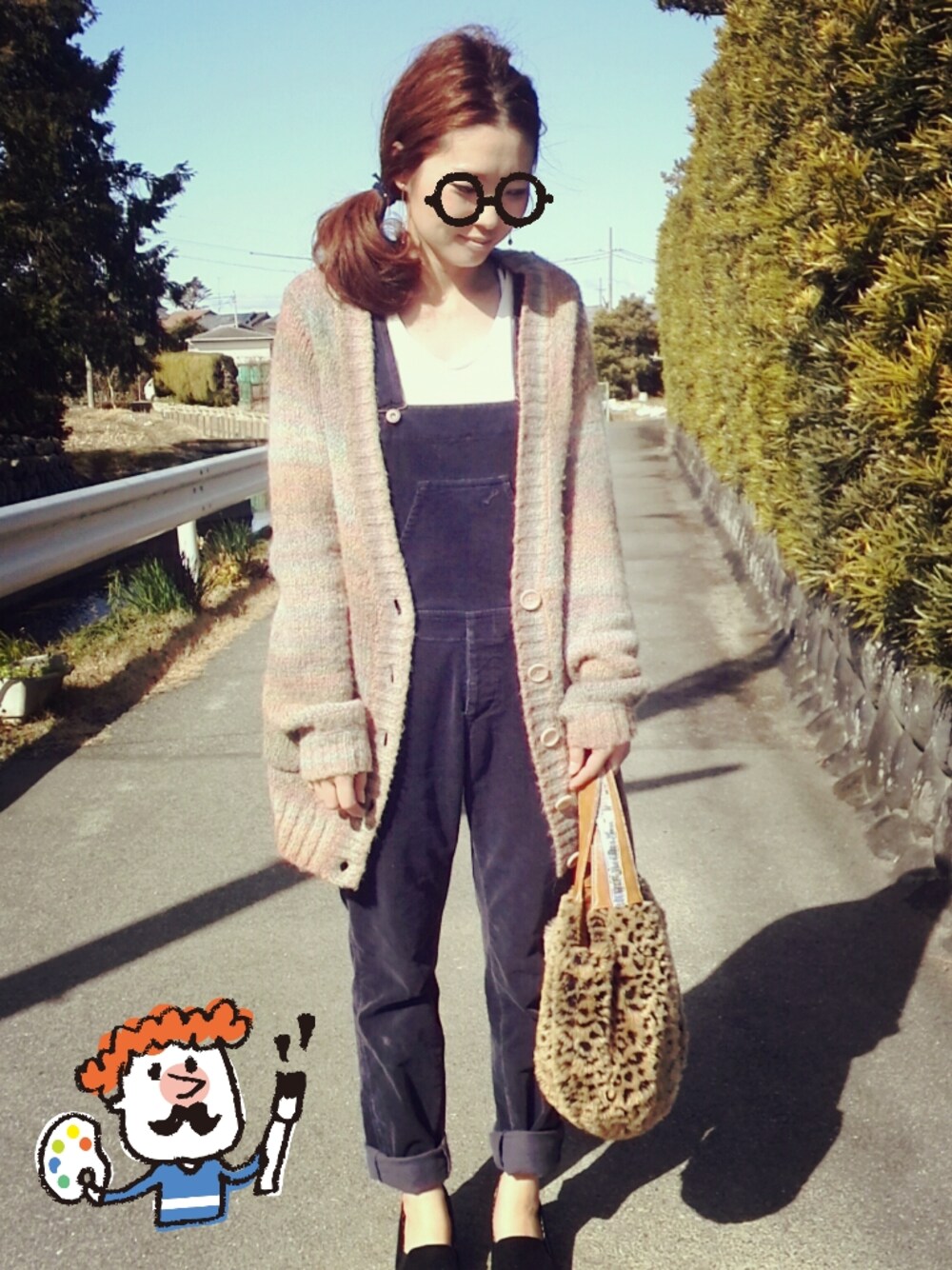 カーディガン ↓ ヘザー サロペット ↓ studio CLIP 靴 ↓ ティティベイト