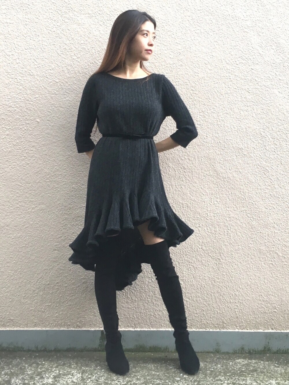 chieのブーツ「スエードニーハイブーツ 」を使ったコーディネート