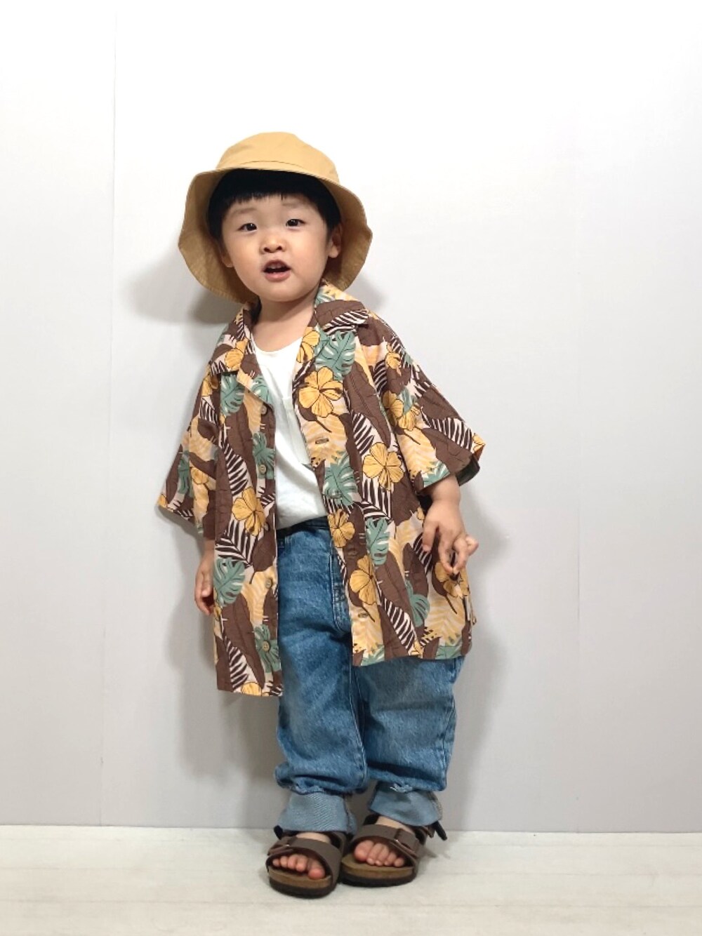 YU⭐︎のシャツ/ブラウス「ボタニカル柄シャツ■80~140cm」を使ったコーディネート