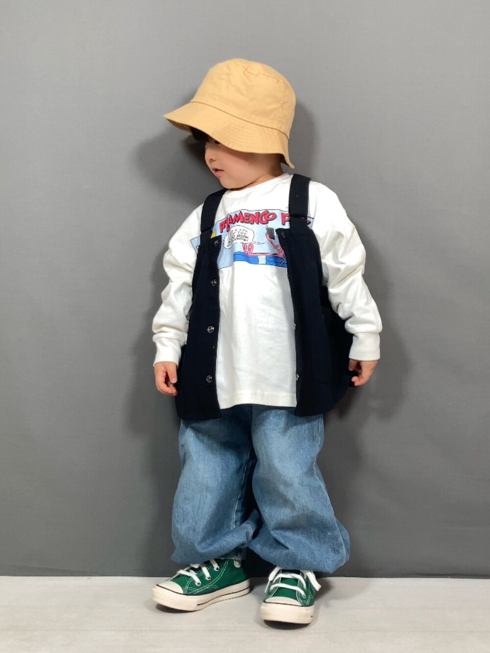 おはようございます😊 ベストを合わせて春のレイヤードスタイル🦺🌸 春夏は日差しが強くなるのでバケットハットが大活躍です☀️ 見て下さりありがとうございます😄🍩 いいね、お気に入り、フォルダイン、フォローありがとうございます😉🍓 *・゜゚・*:.。..。.:*・*:.。. .。.:*・゜゚・* 3y7m 90cm 13kg☺︎