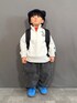YU⭐︎のスウェット「【NCAA】ロゴプリントハーフジップスウェット」を使ったコーディネート