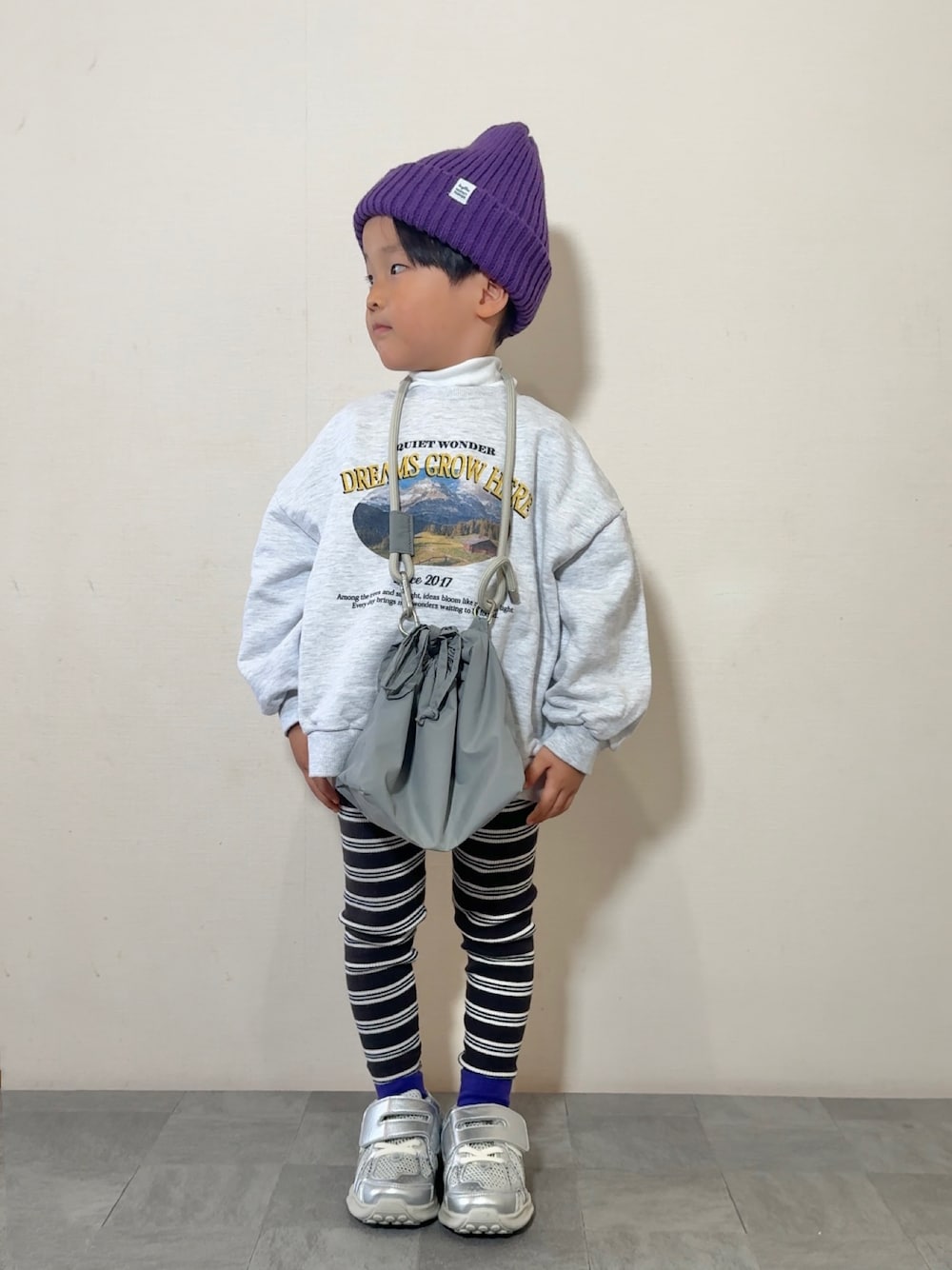 スウェット×レギンスでラフコーデ☺︎ パープルをポイントに💡 見て下さりありがとうございます♡ いいね、お気に入り、フォルダイン、フォローありがとうございます✏︎ *・・*:.。..。.:*・*:.。. .。.:*・゜゚・* 5y3m 104cm 16kg☺︎