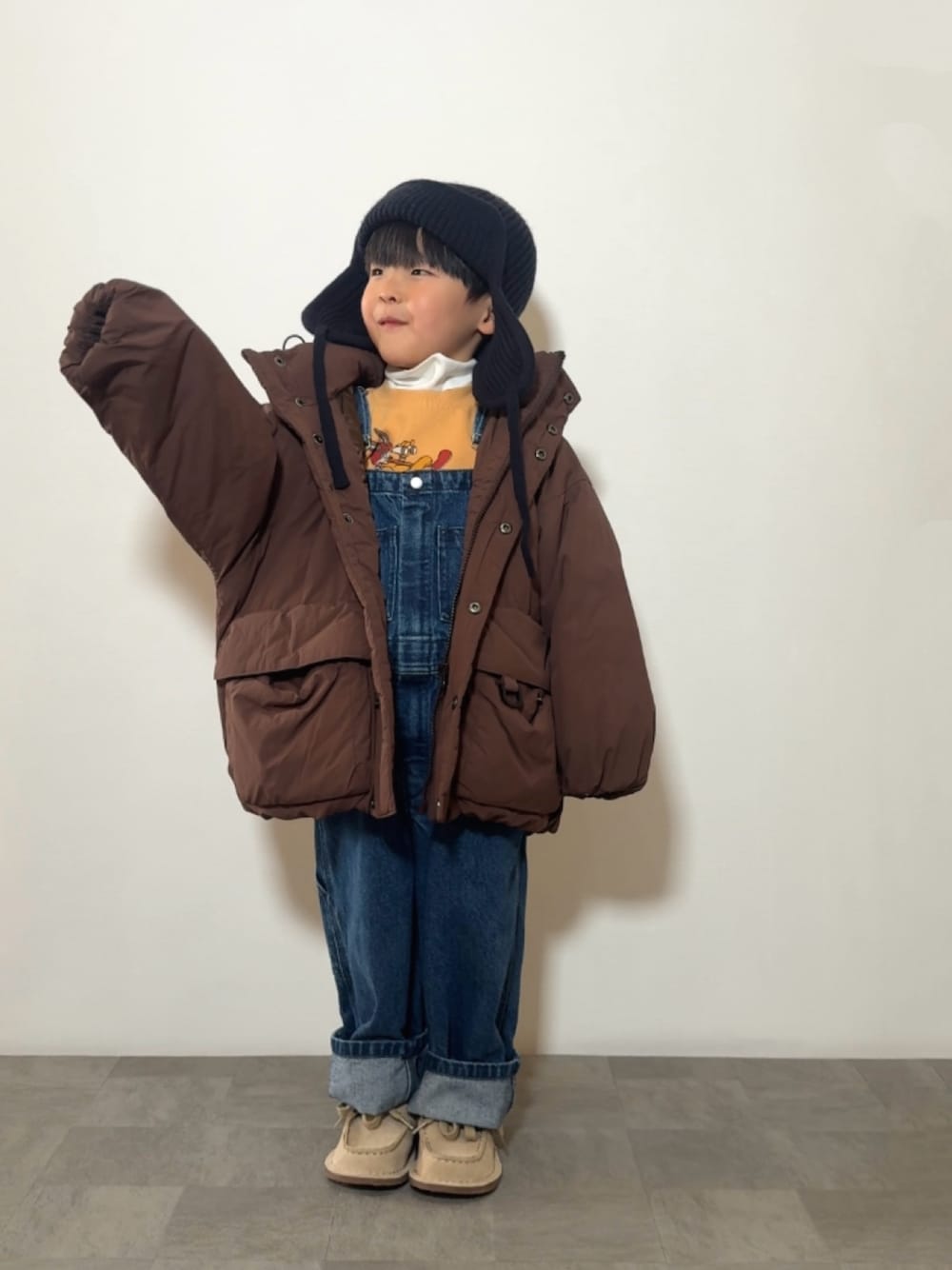 あったかダウンジャケットを合わせてデニムサロペットスタイル☺︎ 見て下さりありがとうございます♡ いいね、お気に入り、フォルダイン、フォローありがとうございます✏︎ *・・*:.。..。.:*・*:.。. .。.:*・゜゚・* 5y5m 105cm 16kg☺︎