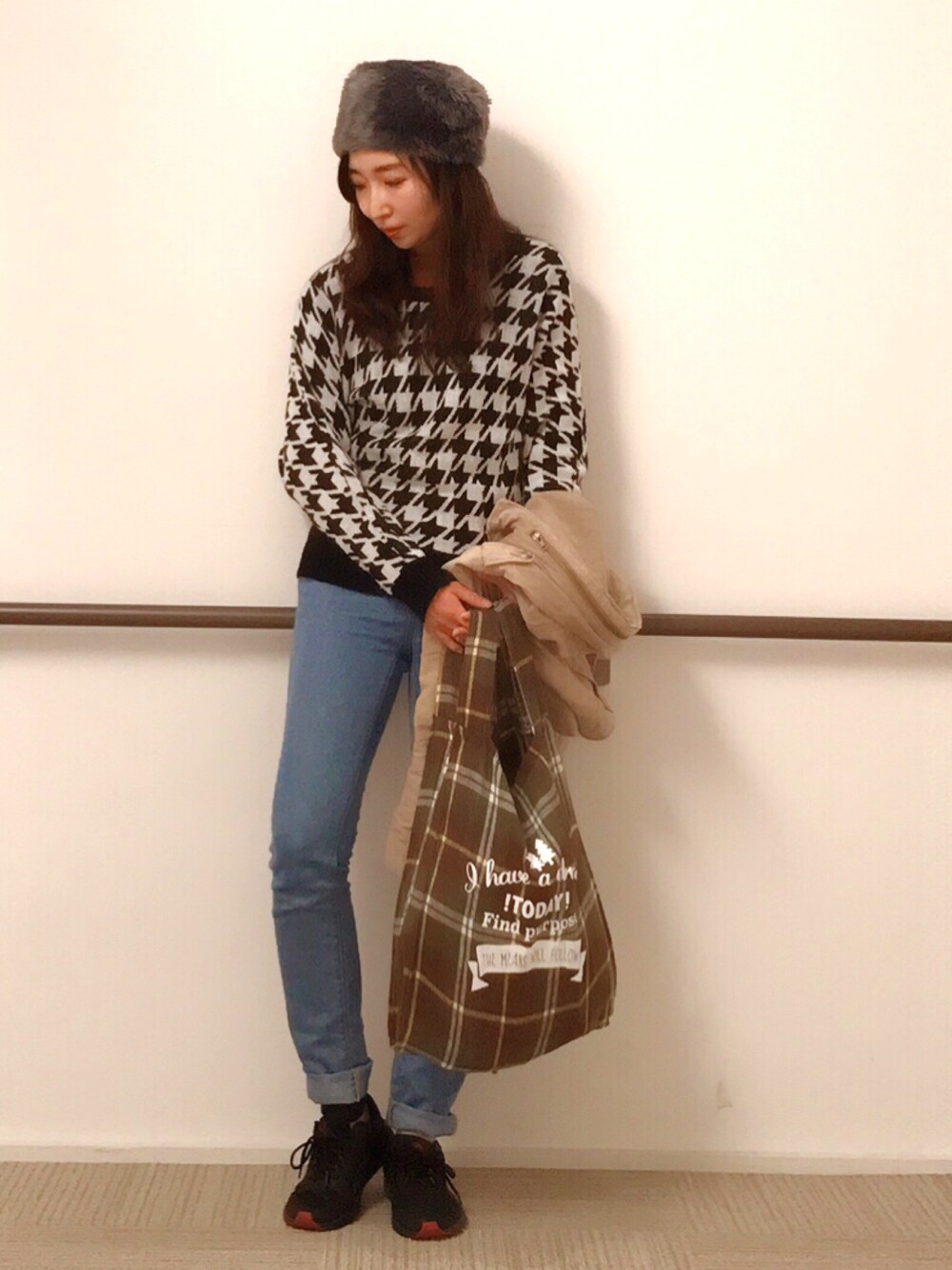 TARÖSUKEのニット/セーター「CECIL McBEE(セシルマクビー)千鳥柄ドルマンニットソー」を使ったコーディネート
