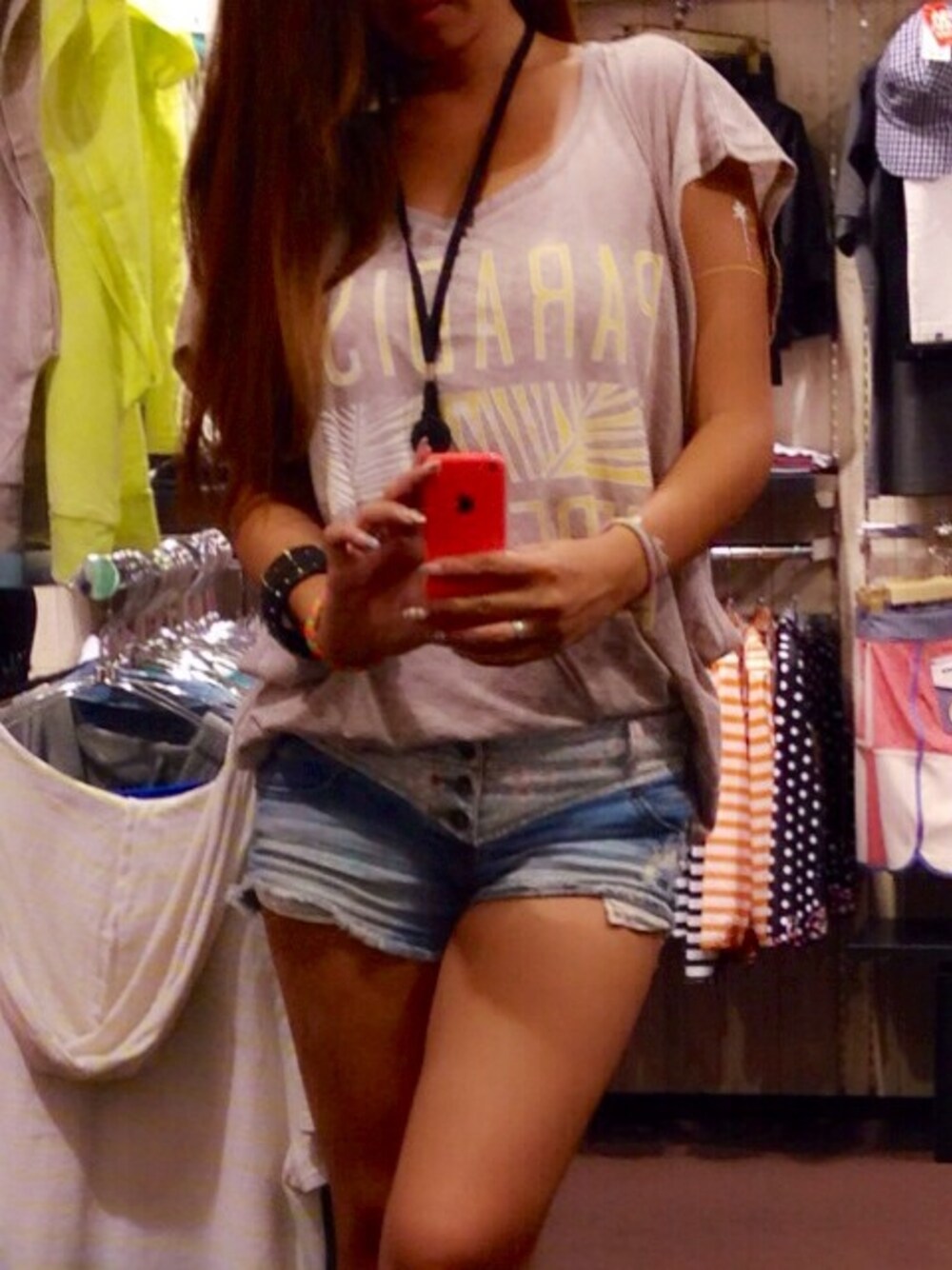 サイドがウエスト位置まであいてるので安ピンでちょこっと留めましたw 腕には懐かしのタトゥーシールが、今風の柄とゴールド&シルバーでカワイイからブーム♡