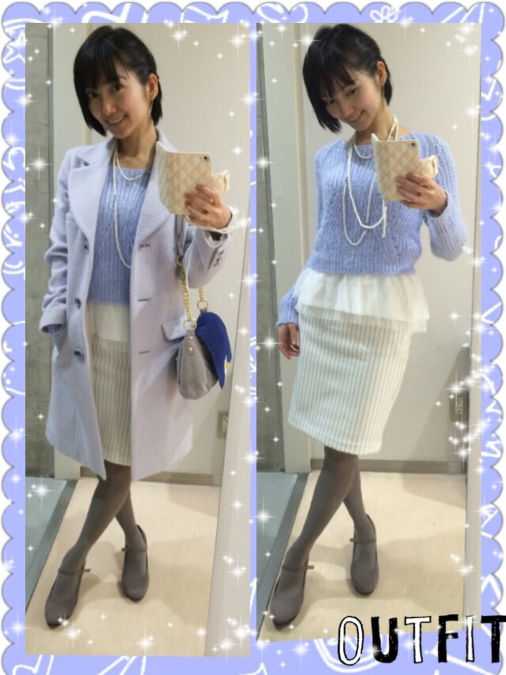 探していた薄いブルーのコートで私のサイズに合うのをやっと見付けた☆今年のトレンド満載コーデです。
