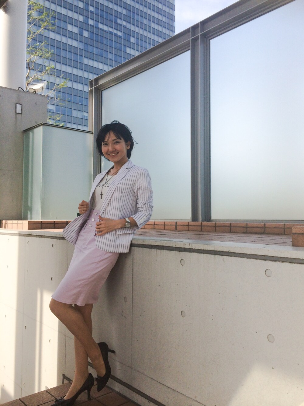 欲しかったストライプの薄手のジャケットをguで見つけました(^^)タイトスカートでカッコ良く☆上に黒のレザーライダースを持ってきていて、バッグは白にしてます。