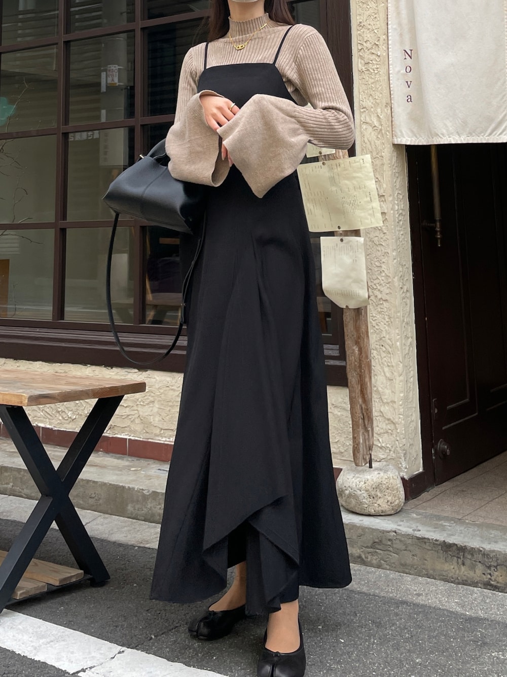 chieriのニット/セーター「ベルスリーブリブニット」を使ったコーディネート