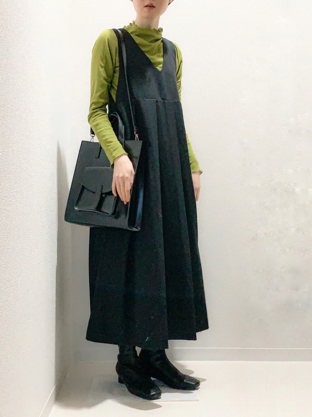 智のワンピース「BIGプリーツジャンパースカート」を使ったコーディネート