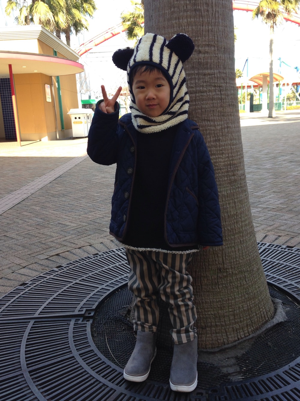 真冬の遊園地での防寒対策。 迷子対策にも役立って、助かりました。 道行く人たちに「かわいい💕」と 言ってもらえ、本人も満更ではない 様子でした笑。 もう数年すれば、この「かわいい」を 嫌がるようになるのでしょうね。