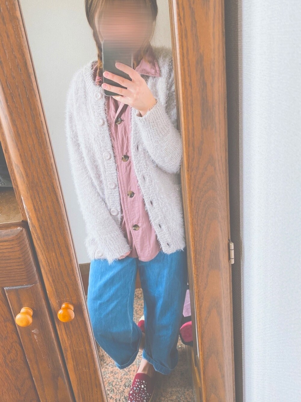 ゆるゆるおうちコーデ٭❀* これなら流行りのオンライン飲み会も 参加出来るかな?! 夜は寒くなることもまだあるので ふわふわカーディガンを 羽織ったりしてます❁⃘*.゚ 邪魔な髪の毛は三つ編みにして スッキリ୨୧⑅*. いつもいいね、お気に入りありがとうございます! とっても嬉しいです(*' ')*, ,)✨ペコリ
