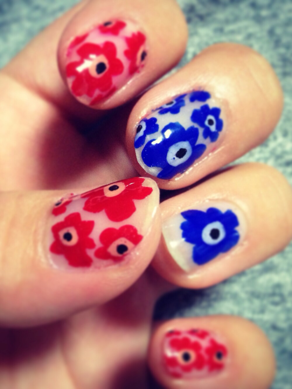 マリメッコのウニッコ柄やってみました! 片手しか写真ないですが、、