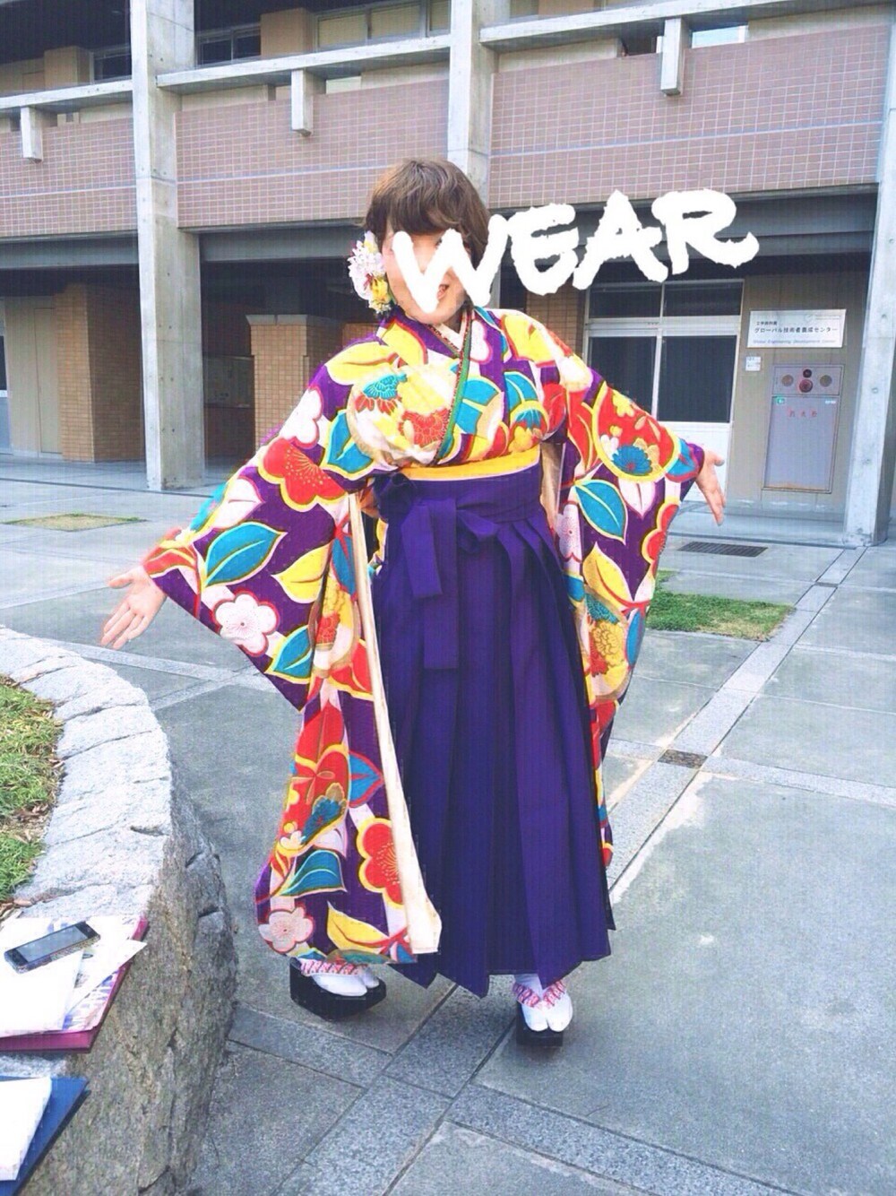 卒業式でした! 髪飾りは手作りでイヤーカフになってます(^O^) 大学4年間楽しかったし幸せだった〜