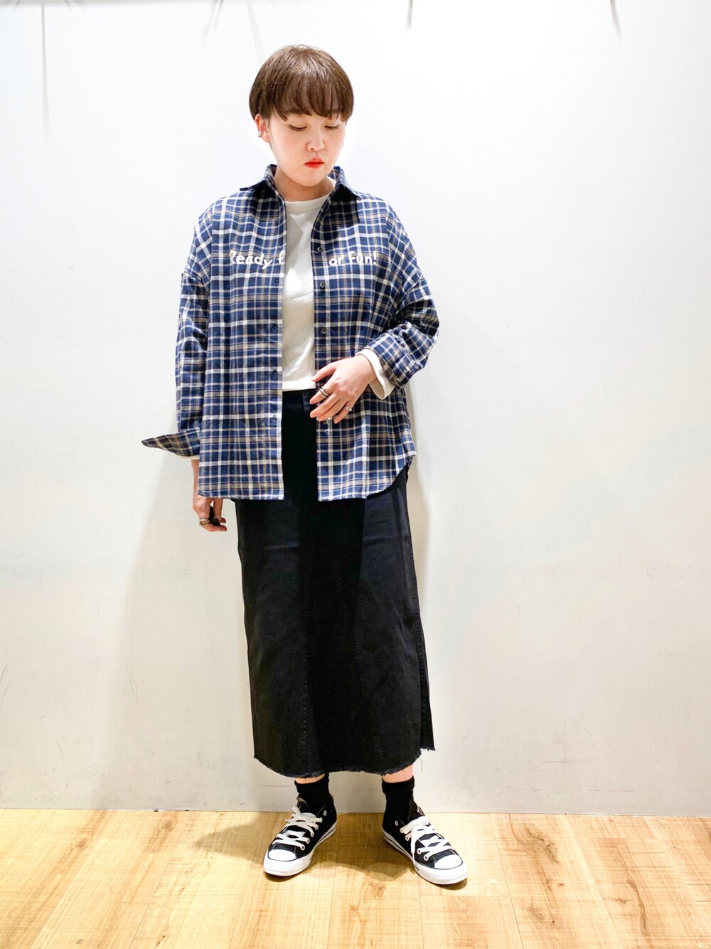 ばしさんのシャツ/ブラウス「チェック綿ビエラBIGシャツ/Mickey」を使ったコーディネート