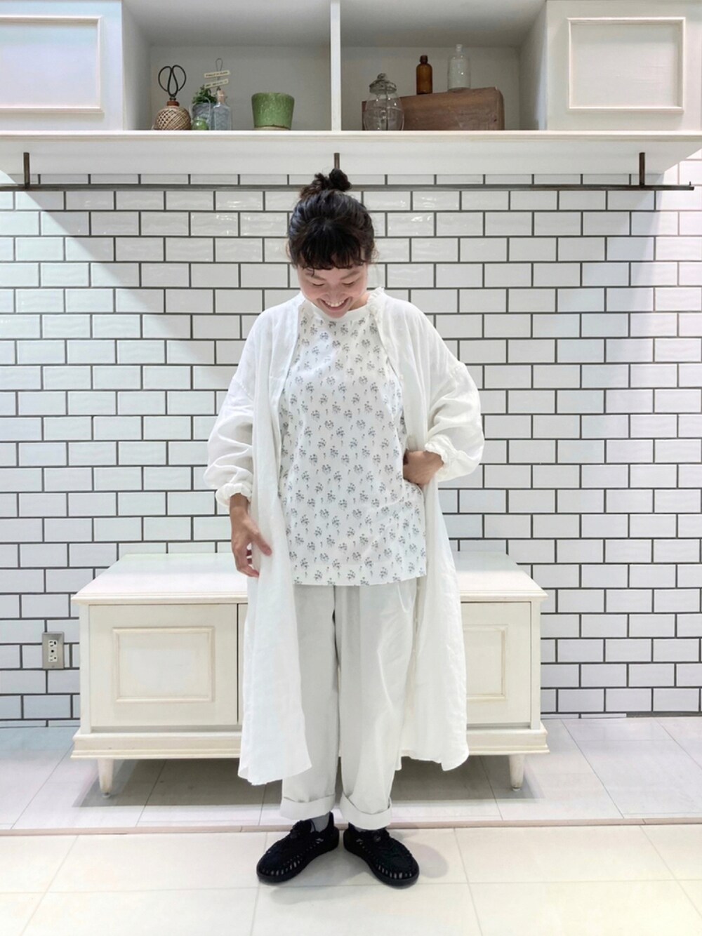 chihako(natural couture 心斎橋店)のTシャツ/カットソー「花柄プリントルームウェアセット」を使ったコーディネート