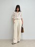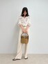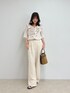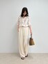 フリルブラウス×ワイドスラックスで上品カジュアル 身長・着用サイズ 156cm/トップス:38サイズ、ボトムス:38サイズ トップス フロントに贅沢にあしらったフリルが目を惹く前開きブラウス。程よいボリューム感がありながらも、軽やかな素材なので甘すぎず大人っぽい印象で着られます。羽織りとしても使えるデザインで、着回し力も抜群。気になる二の腕や肩回りを自然にカバーしてくれるのも嬉しいポイントです。 ボトムス 毎年人気のスラックスが秋冬仕様で再登場。しっかりとした生地感でシルエットがきれいに出るので、下半身をすっきりと見せてくれます。ワイドめのラインですが、とろみ素材の落ち感があるため広がりすぎず縦長効果も◎。私が着ているのはアイボリーカラーで、どんなトップスとも合わせやすく、着回しやすさも抜群です。 気になる方はぜひ店頭またはオンラインでチェックしてみてくださいね!