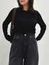 シアーロンT×デニムで大人シンプルスタイル 身長・着用サイズ 156cm/トップス:38サイズ、ボトムス:38サイズ トップス 上質なウール素材を使用したシアーロンTは、程よい透け感があり一枚でもレイヤードでも楽しめる万能アイテム。フィット感がありつつも柔らかい着心地で、すっきりとしたシルエットを演出してくれます。シンプルながらも大人の抜け感をプラスできるところが魅力です。 ボトムス ベーシックなストレートシルエットのデニムは、ハイウエストで脚長効果も抜群。適度なゆとりがあるので体型を選ばず、カジュアルにもきれいめにも合わせやすい一本です。落ち着いた色味のブラックデニムは、シーズンレスで着回しが効くのも嬉しいポイント。 シンプルな合わせでもこなれ感のあるコーディネートに仕上がるので、気になる方はぜひ店頭またはオンラインでチェックしてみてくださいね!