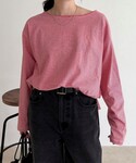 🔴赤ロンTで大人カジュアルスタイル (身長156cm / トップス38サイズ・ボトムス38サイズ着用) トップス 鮮やかな赤のロンTは、着たときに顔まわりがパッと明るく見えて気分も上がります。ゆとりのあるシルエットで体のラインを拾わず、リラックス感のある着心地でした。首元は横に少し開いていて、自然と抜け感が出て女性らしい印象になります。 ボトムス ハイウエストのチノパンは、履いたときのシルエットが腰位置を高く見せてくれるので脚長効果◎。お腹まわりもすっきり収まって、トップスをインしても安心でした。ワイドですが落ち感があるので、動いても広がりすぎずきれいにまとまります。 全体としては、体型カバーもできつつ楽な着心地で、普段使いからお出かけまで幅広く活躍してくれそうです。 気になる方はぜひ店頭やオンラインでチェックしてみてくださいね!