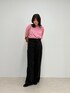 🔴赤ロンTで大人カジュアルスタイル (身長156cm / トップス38サイズ・ボトムス38サイズ着用) トップス 鮮やかな赤のロンTは、着たときに顔まわりがパッと明るく見えて気分も上がります。ゆとりのあるシルエットで体のラインを拾わず、リラックス感のある着心地でした。首元は横に少し開いていて、自然と抜け感が出て女性らしい印象になります。 ボトムス ハイウエストのチノパンは、履いたときのシルエットが腰位置を高く見せてくれるので脚長効果◎。お腹まわりもすっきり収まって、トップスをインしても安心でした。ワイドですが落ち感があるので、動いても広がりすぎずきれいにまとまります。 全体としては、体型カバーもできつつ楽な着心地で、普段使いからお出かけまで幅広く活躍してくれそうです。 気になる方はぜひ店頭やオンラインでチェックしてみてくださいね!