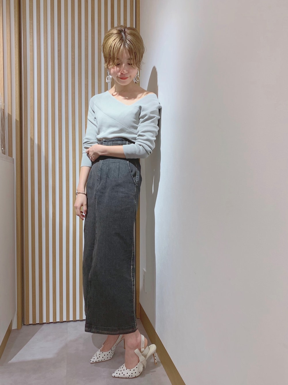 デコルテが綺麗に見えるTOPS💚ミントグリーンが春らしくてお気に入りです😊 ピアスは大ぶりですが軽くてつけやすいです! パンプスはランダムなドットとリボンが可愛いです💓 デニム合わせなら甘くなりすぎず程よくカジュアルダウンできてお勧めです✨