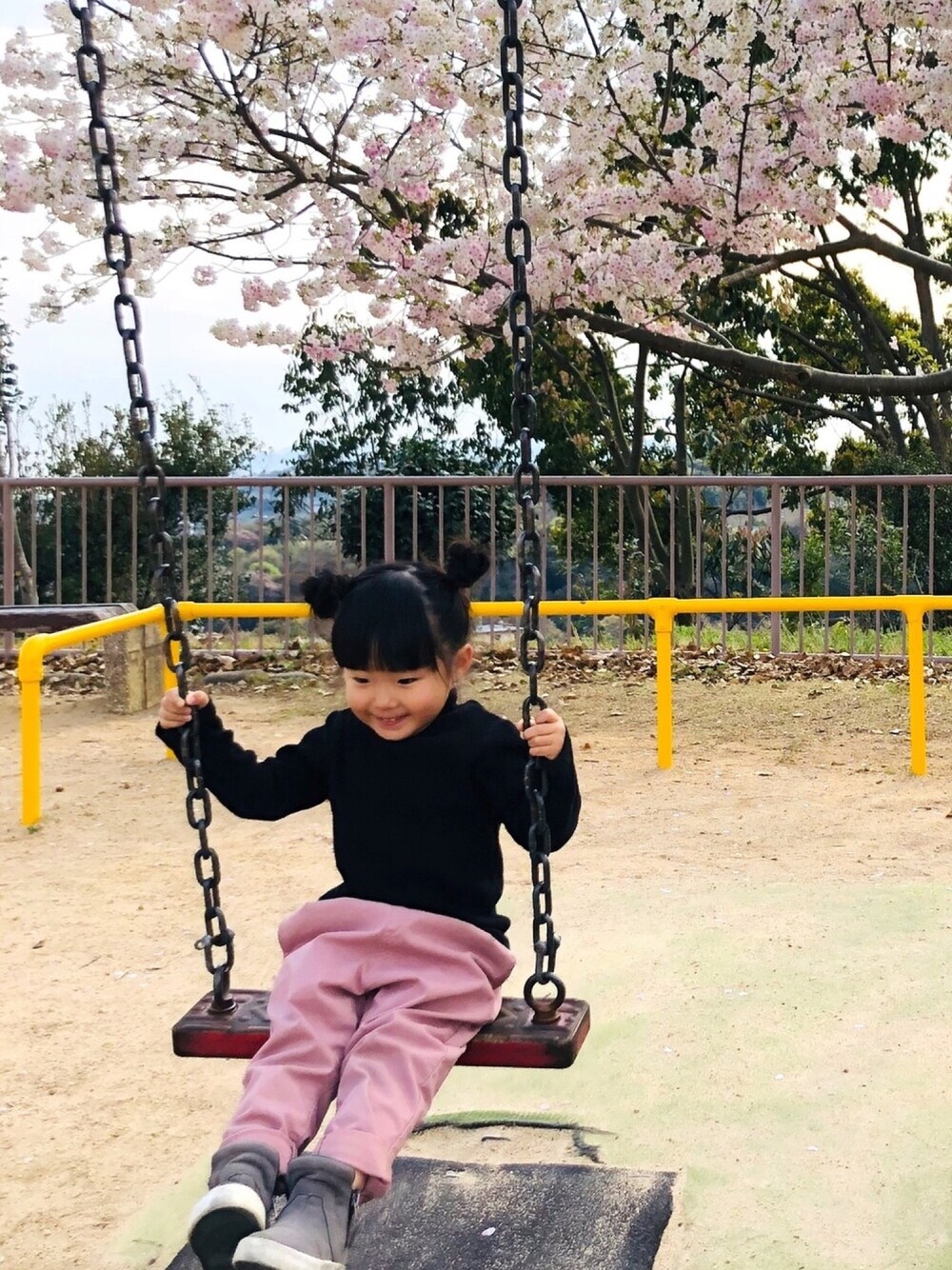 今日のシンプルな公園コーデやけど ブランコ後ろの桜がよかった🌸✨