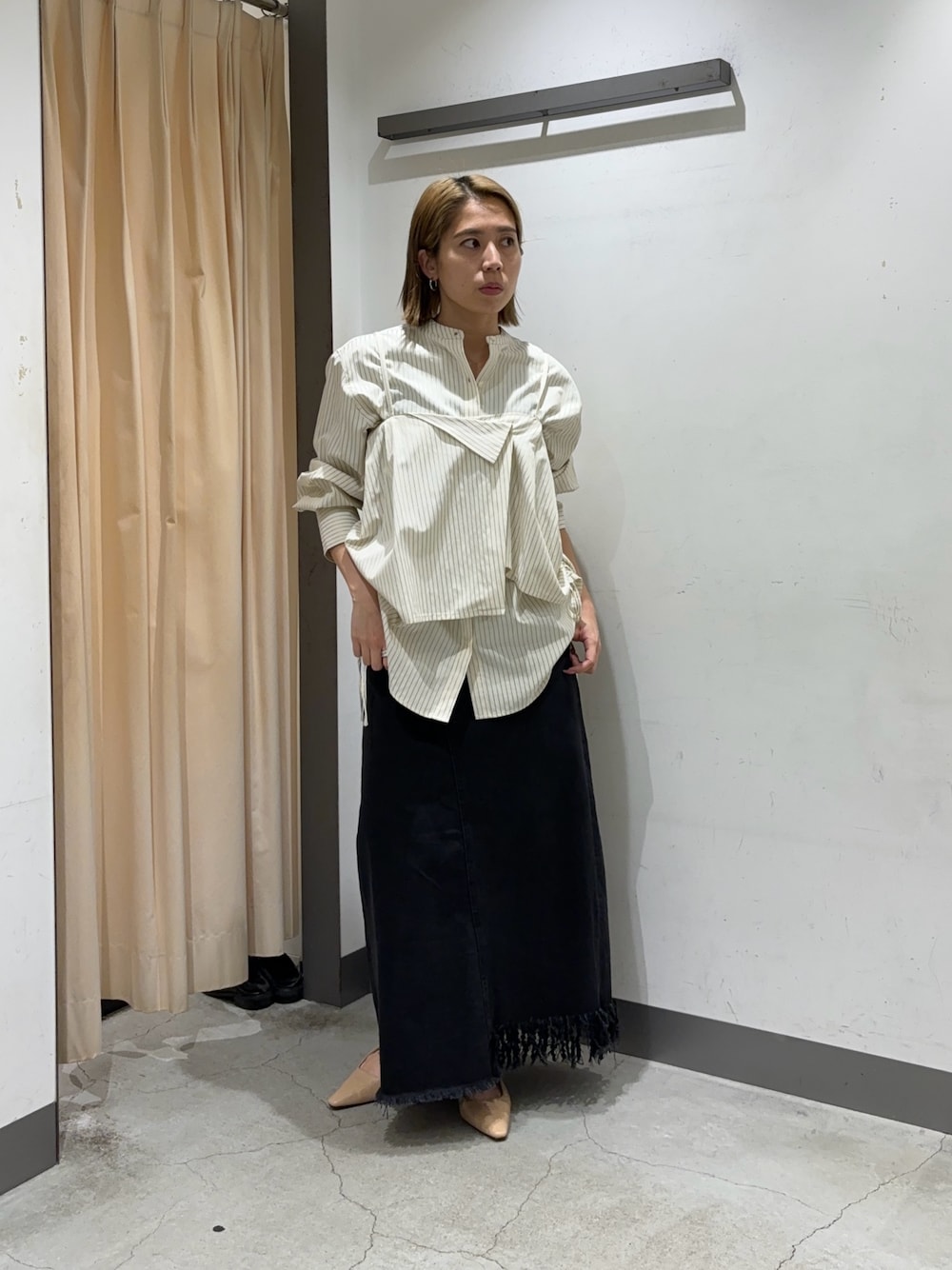 chihiro(KBF なんばCITY)のスカート「アシメフリンジデニムスカート」を使ったコーディネート