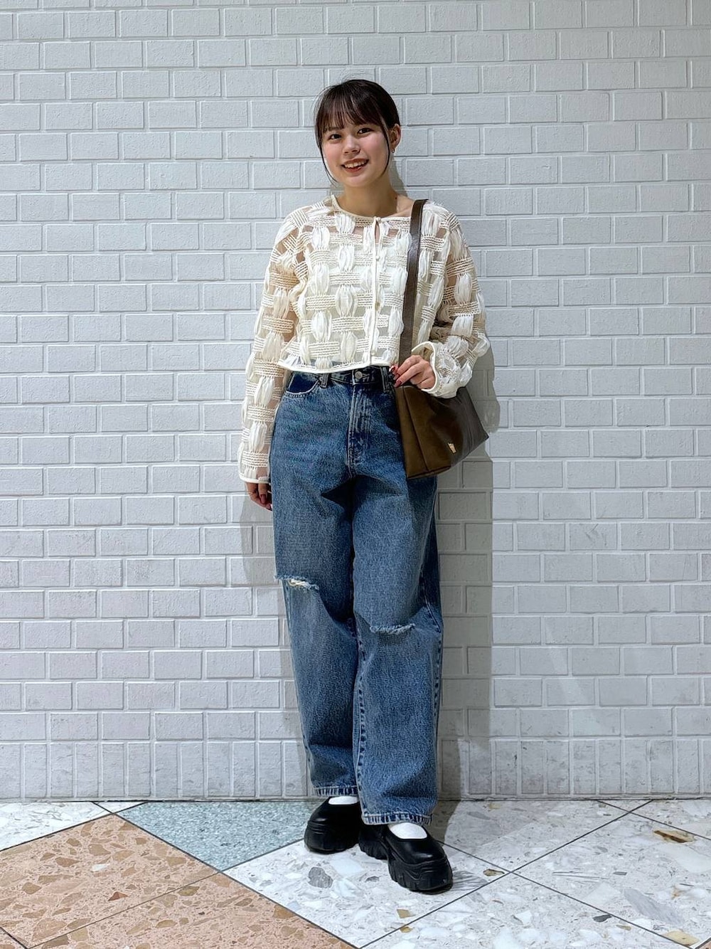 👚トップス 透け感のあるナイロンシフォンの素材使用した今年らしいカーディガン💖 ワイドなシルエットですがクロップド丈にすることですっきりとしたシルエットに! 前後2wayで着用ができるのでスタイリングによって着こなしを変化させて着用できます🐣 甘めのデザインなのでカジュアルボトムとの合わせがおすすめ◎ 👖デニム 定番のCONEデニム👖 ワイドストレートのシルエットがどんなトップスとも相性抜群です◎ 細すぎずワイドすぎない着回ししやすいシルエットです!! 👠バレエスニーカー スニーカー感覚で履けるバレエシューズ🩰 厚底なのでスタイルアップできて、長時間履いていても疲れにくいです!! 24.5cmでLサイズ着用しています! ______________________ 《 staff board & Instagram 更新中!》 始めたばかりですが、、ぜひ見て頂けると嬉しいです🐣 @_chipi.22_ ☝️フォローお待ちしてます🌼 おしゃれ初心者さんでも真似しやすいコーデ🐥 カジュアルミックスなコーデや日常を投稿しています 投稿しているコーデが参考になりましたら、是非お気に入り♡やいいね👍お願いします🫶 また、下の使用アイテム一覧からお買い物して頂けると嬉しいです💝