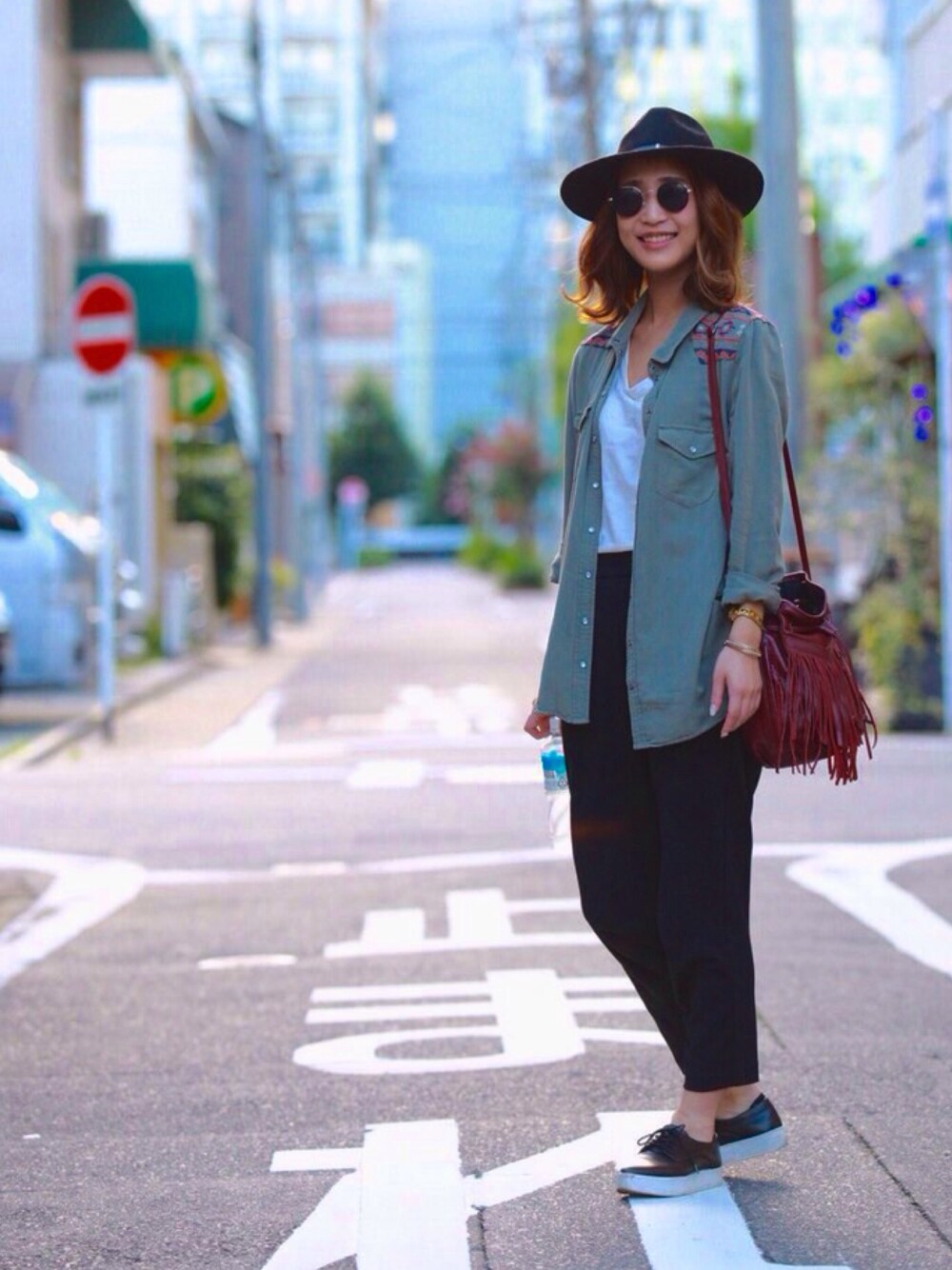はじめまして🙆🏼🙌🏼 ゆるりと更新していきます♡ 秋なので秋色をいれたコーデです✌︎ スニーカーで楽チンさもぷらす笑
