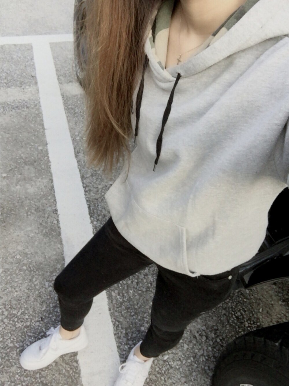 こんばんわ😊 今日はとりあえず動きやすさ重視コーデでした! そんな日はこのパーカーよく着ます😤 フードの内側がカモフラージュ柄で可愛いの😍 一枚で着れるからめっちゃ楽チン❤️