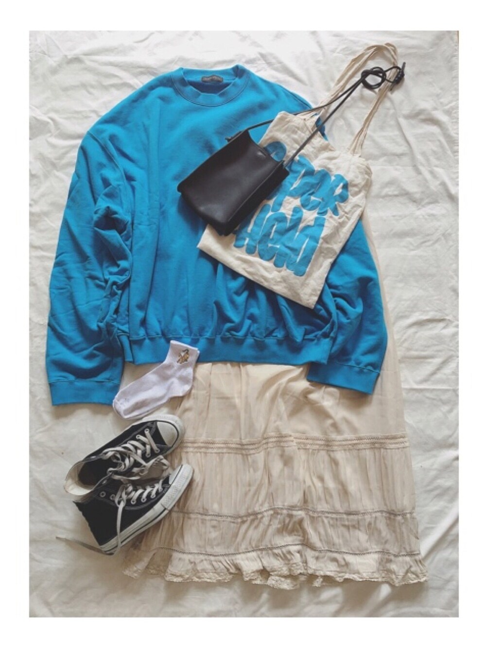 今年は青をたくさん着たい🧊💎🐳💙 MAISON SPECIALのオーバーサイズスウェット、オーバーサイズが桁違い。 なんて可愛いの‥