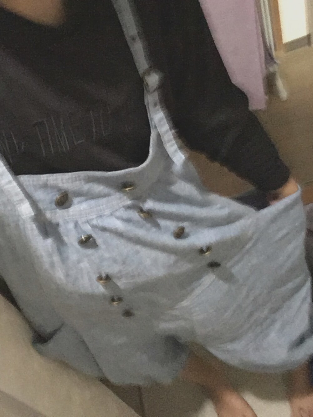 お気に入りのお店で買った1点物の薄めの生地のサロペット💕👈 ちょっと変わった形でかわいい😮