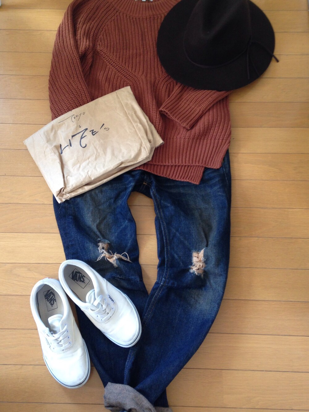 Todayfulとmatatabiのコラボクラッチを使いたくて組んだコーディネート。 Global workのニットは新作★